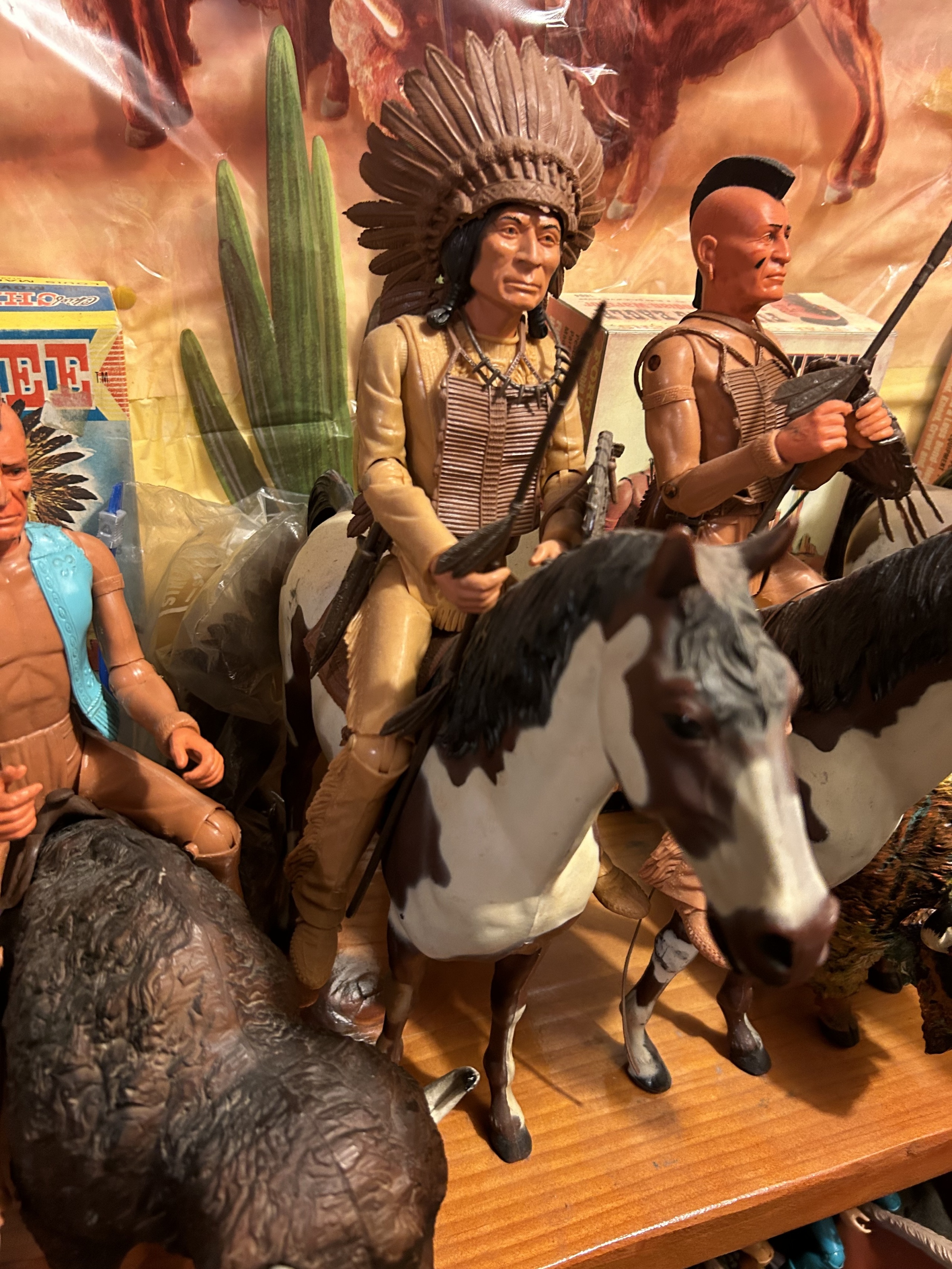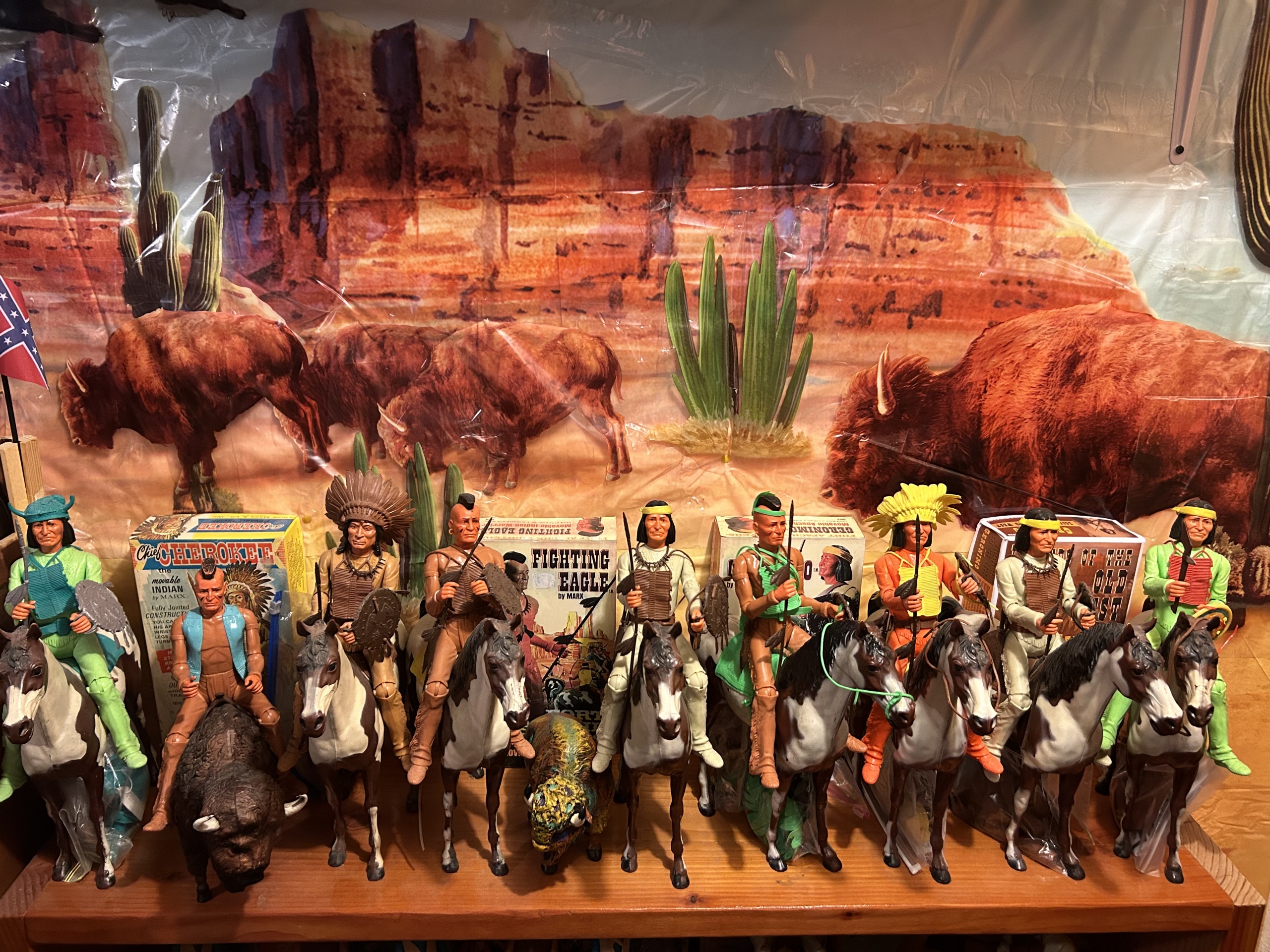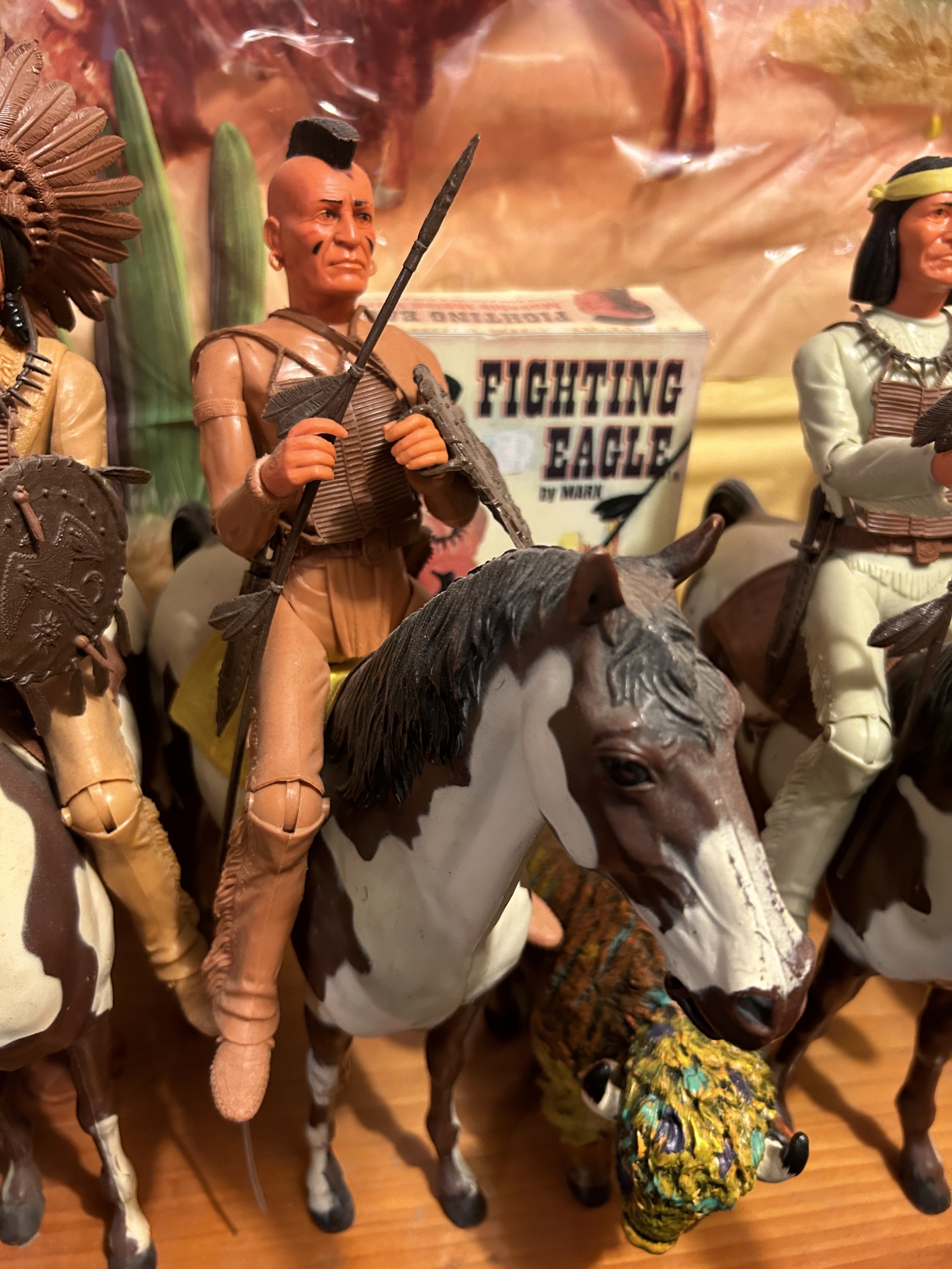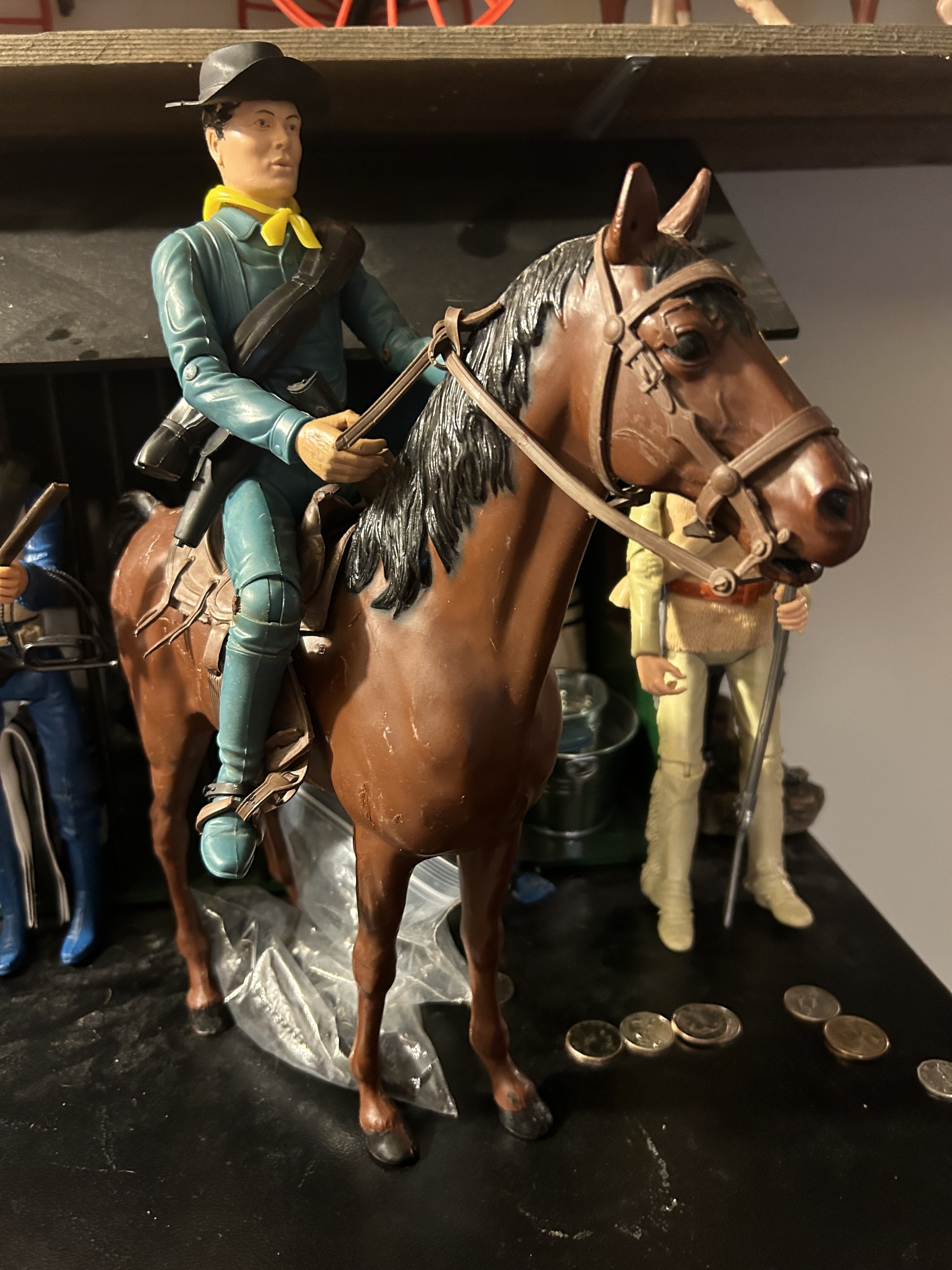 Johnny West figures all mounted on Thunderbolt horses: Johnny WestSheriff GarrettSheriff Goode CanadianSam Cobra on Satan horseGeneral CusterCaptain MaddoxZeb ZacheryChief Cherokee on Storm Cloud horseGeronimoFighting EagleAll figures come with all accessories and sheet, No boxes.
