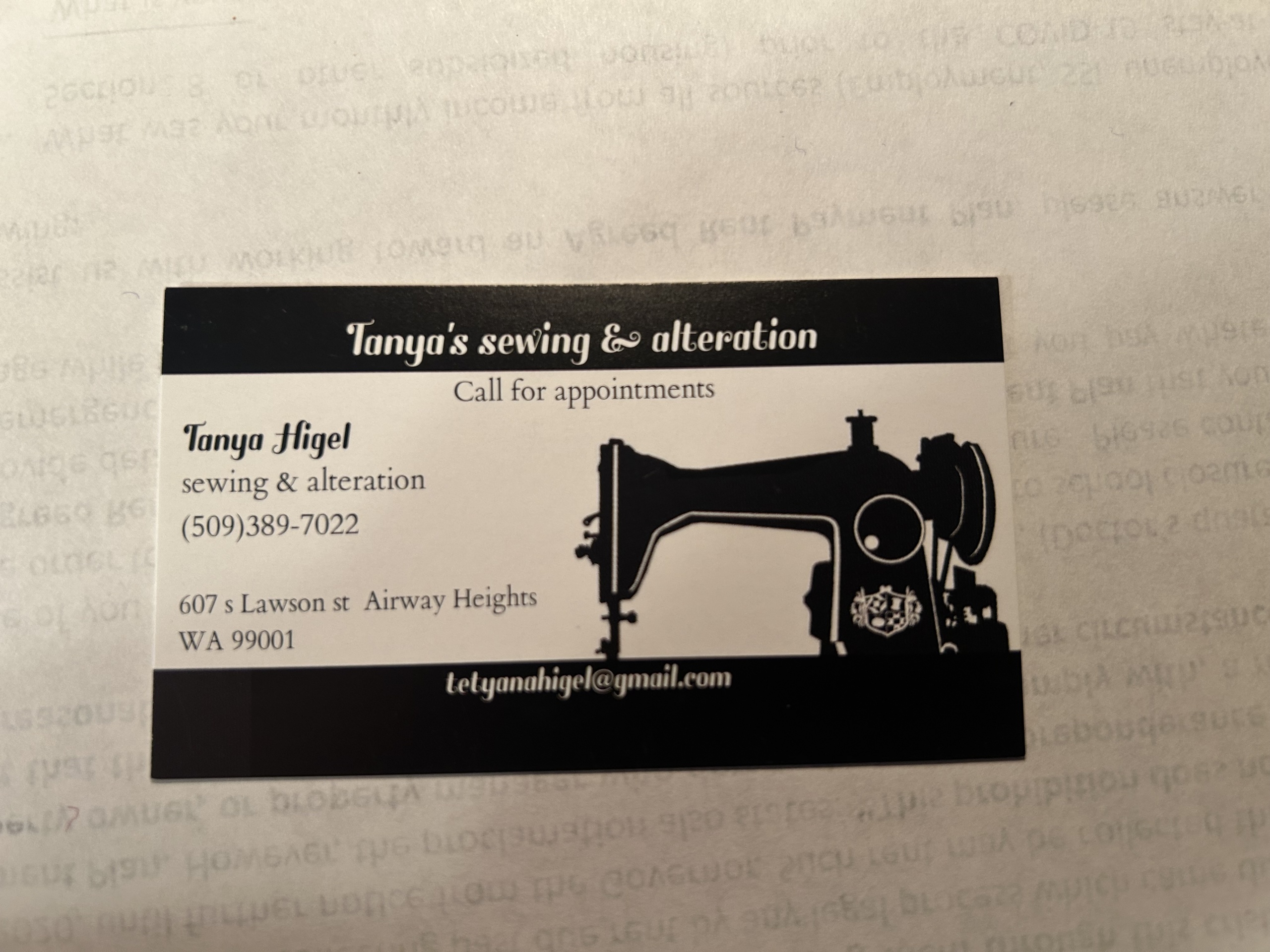 Tanya’s Sewing & Alterations Airway Heights, Washington 509-389-7022