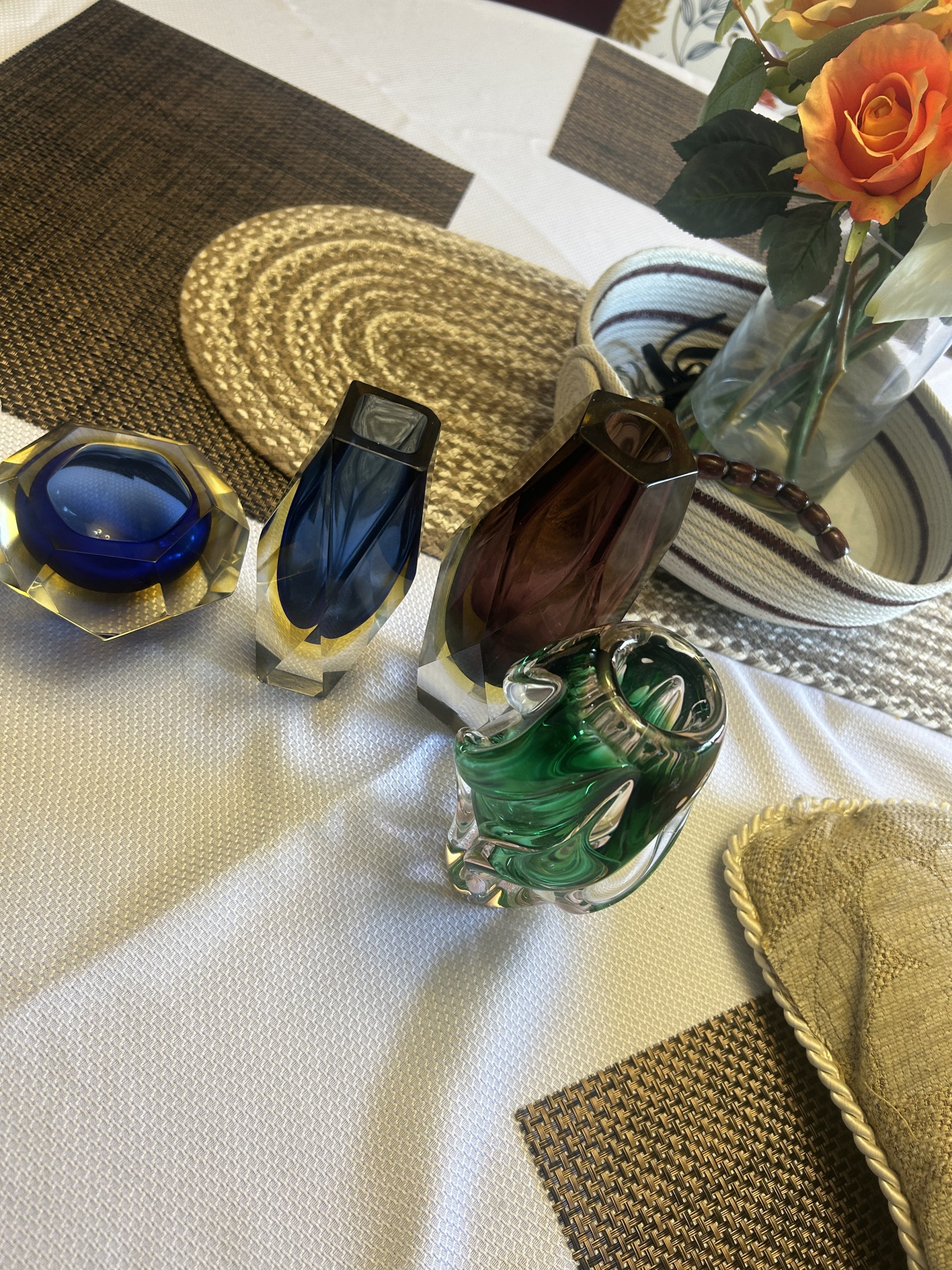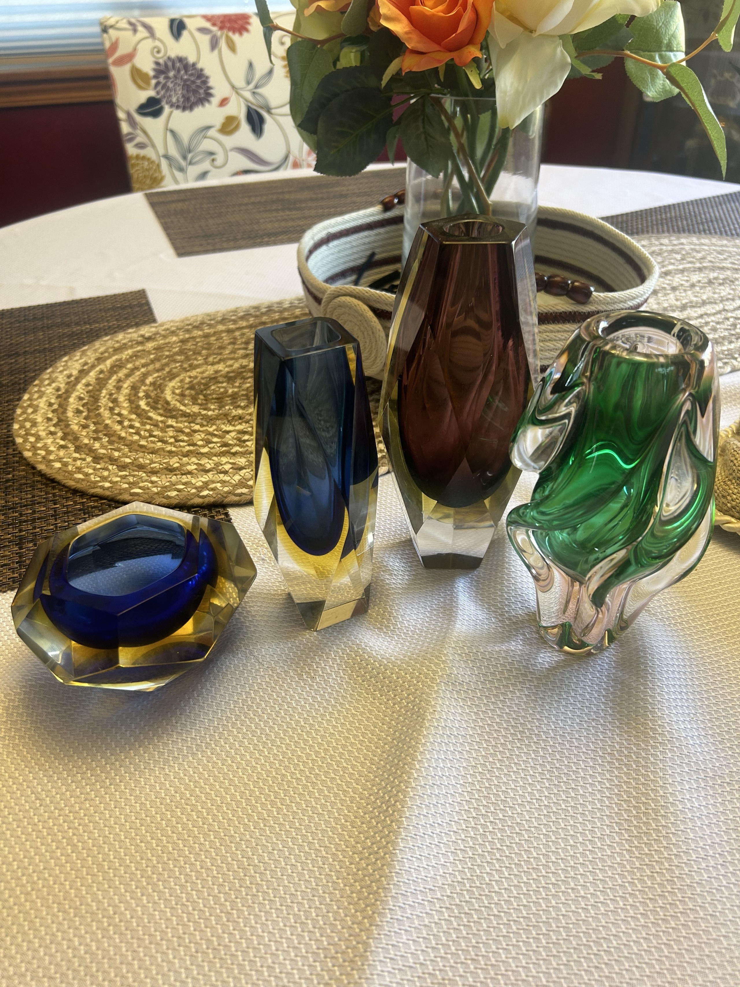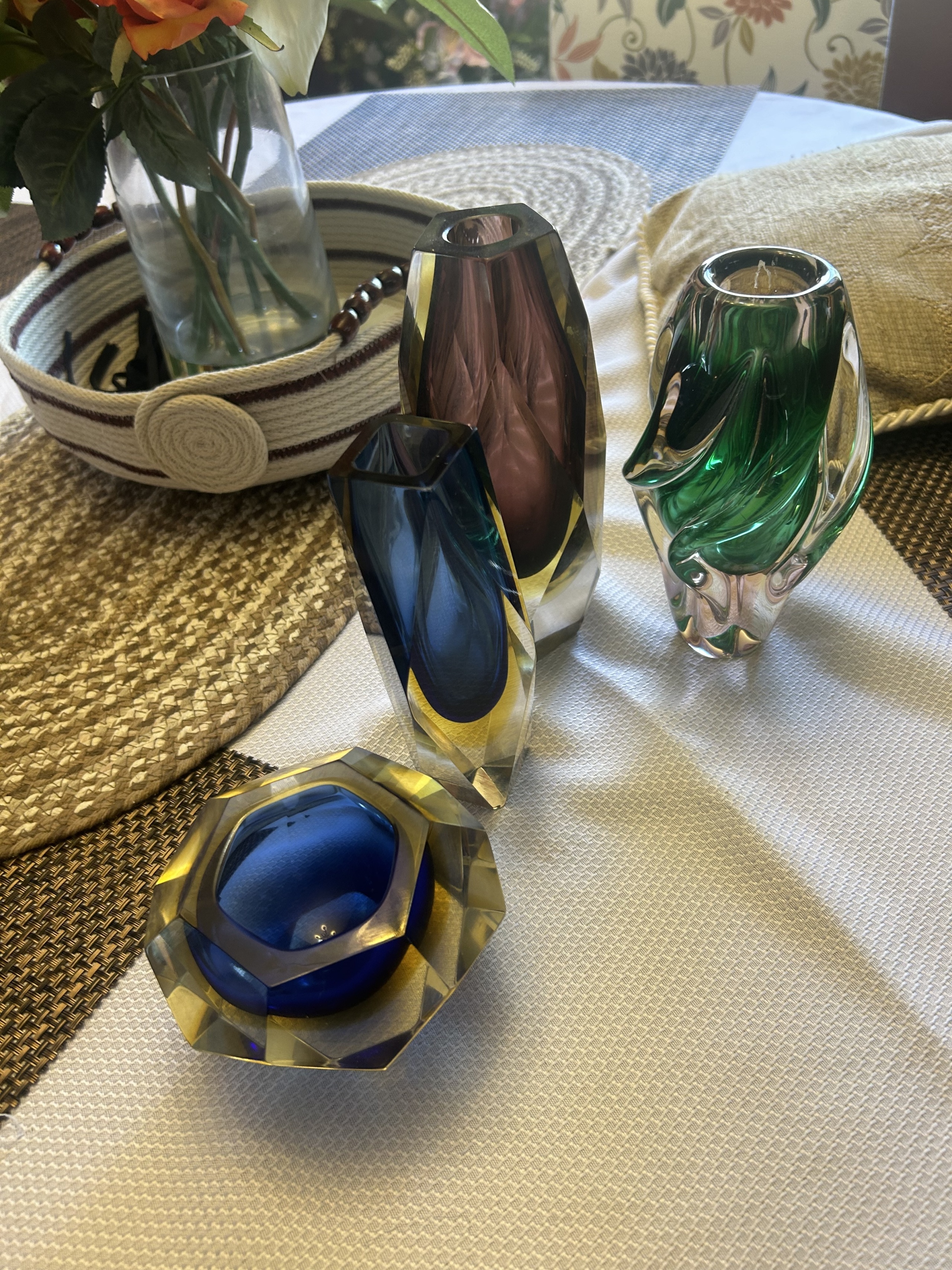 Picked up these Venetian Glass pieces in 1983 in Dezenzano, Italy. Very unique colorful beautiful heavy glass